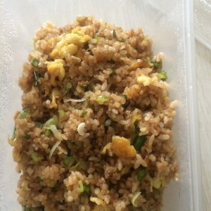 炒米时火不能大,炒热了放料汁,一定要不停的炒要不然扒锅了,然后加入炒好的蛋,炒匀。