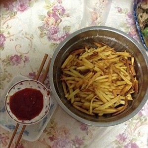 将土豆洗净、去皮、切成片状、再切成条(建议稍微粗点)。