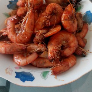 等油热后,把备好的葱,姜,蒜,八角放入锅中煸炒,炒出香味后倒入大虾,炒至红色后放盐,醋,酱油,快速翻炒,让调料均匀,盖锅盖3分钟左右,关火,起锅。
