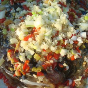 把调好味的鱼头~放在蒸锅上~中大火蒸15到20分钟~