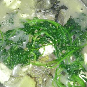 最后加入1公升左右清水和豆腐大火煮开,慢火再煮5分钟,此时加入香菜和稍煮片刻加入盐和鸡粉,就这样大功告成了