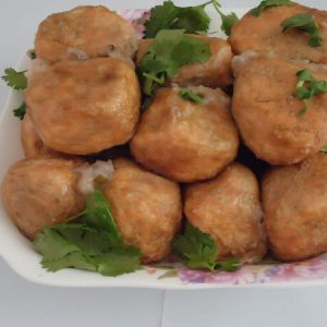 豆腐泡,在八个角中选择一个角开封,往里面放馅