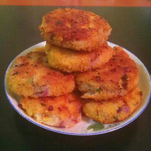 鸡蛋打散调匀,热锅热油,将拌好的土豆泥捏成团均匀沾上蛋液,再裹上面包糠压扁,放入油锅炸至金黄色即可!