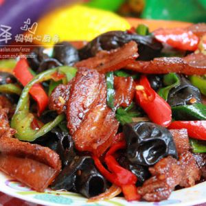 加入郫县豆瓣酱、白糖拌匀,再加入黑木耳翻炒