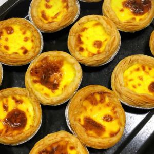 将混合蛋挞液倒入蛋挞皮中,九分满即可(这时候也可以在里面加一点自己的东西)。烤箱220度预热5分钟,220度烤25分钟。(根据自己的烤箱来,着色就好)