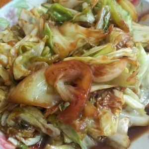 锅热后放入撕好的包菜,大火迅速炒一两分钟,然后放入生抽,白糖,精盐,装盆前倒入蚝油,味精即可!