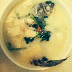 香菜,小葱洗净后切小段。蒜瓣,豆腐切小块。