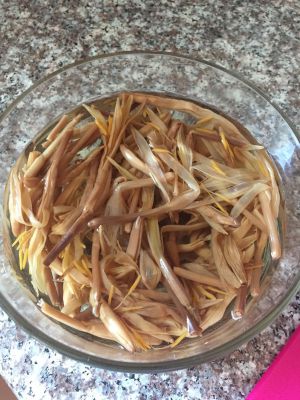小火煮40分钟后加入黄花菜,大火煮开后再关至小火煮20分钟