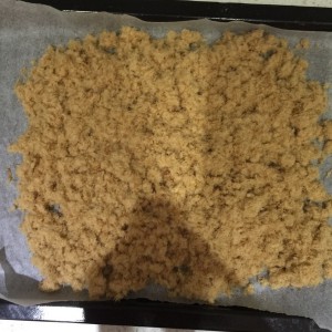 第一次搅碎状态,肉松还不够干,铺盘继续烤,130度,15分钟