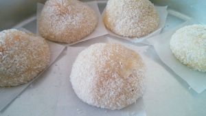敲开的椰子有点难去出肉来,我买的是老些的,所以椰子肉很白很硬了。把他们带壳放上蒸锅蒸二十分钟出来,用刀往角边用力撬就可以完整出来咯,这个时候要注意手