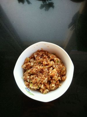 将五花肉切碎用辅料调馅