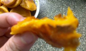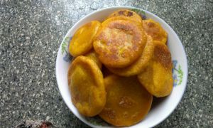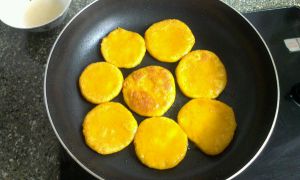 不粘锅内放少许油,油热后放入南瓜饼,转小火慢慢烙