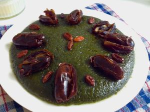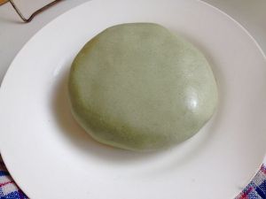 最大团的面两面抹上鸡油,上锅中火蒸25-30分钟。味道清新,颜色碧绿。看来清明节的艾叶圆子可以用这个代替了。