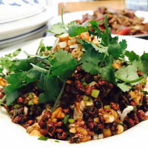 6、制成的调理与鸡丝拌匀,表面再撒一层花生碎。