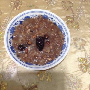 把银耳去掉根部,连同莲子花生,枣,一起放入高压锅
