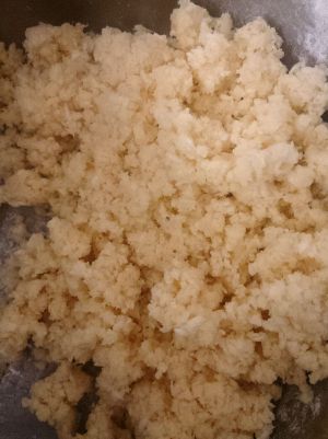 打散鸡蛋加入椰蓉拌匀,然后奶粉 高粉 炼乳 拌匀。