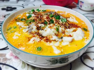 浇在做好的酸菜鱼上面,很香。辣椒油也可以一次性多做一点,没用完的可以放在干净的没水的玻璃罐子,冷藏可以放很久,要吃的时候舀一点即可。