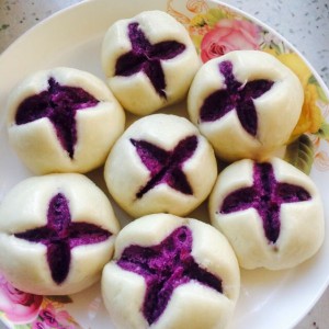 把另半碗面和紫薯泥揉成可爱的紫色的面团 然后放在一旁精置30分钟左右