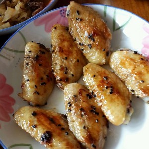 入盘,撒芝麻即可。柠檬可在挤点汁水在鸡翅上。若觉口味淡,可撒点海盐。因海盐细腻。撒一点即可。