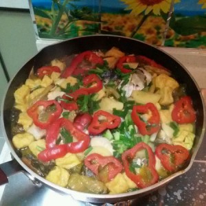 香味出来啦,将腌制好的鱼鱼放入,哎,料到多时恨锅小呀。