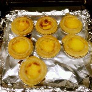 烤盘放好锡纸,倒入蛋挞皮8分满,烤箱预热200度10分钟,放入烤箱上下火烤20分钟,看到表面微微变黄即可出炉。