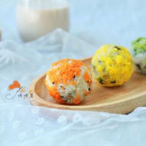 米饭提前拌入少量寿司醋,海苔放入无水锅中,开小火烘脆,搓碎,拌入米饭。