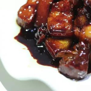 大火烧开后加入老抽、冰糖,再转小伙焖煮50分钟,加盐收汁。(出锅时把葱姜夹出,以免影响美感。)