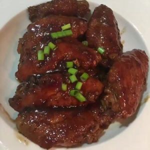 锅热鸡翅煎至两面金黄后捞出 放葱姜蒜八角炒香后鸡翅再次下锅 加生抽 酱油 醋 翻炒均匀