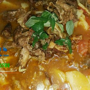 按煮饭程序烹制,可以打开盖后,将牛腩切小块