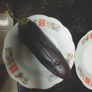 准备一个大茄子,洗干净放微波炉里烤5~6分钟