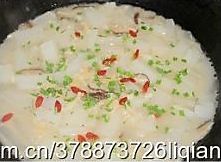 倒入干贝丝、香菇丝(连同泡过的汁水一同倒入)下适量盐、白糖、蔬之鲜翻炒匀;