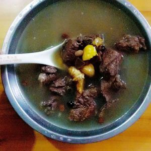 食材准备齐全,因为本人喜欢吃黑豆和花生,所以放得有点多,黑豆要提前浸泡一晚上,排骨,黑豆,花生,橘皮,板栗洗净,然后这边先把板栗放进加水的锅里煮开后,再煮几分钟,然后捞出,放在冷水里浸泡会,这样板栗壳才好去掉,里面那层薄皮也要去掉。