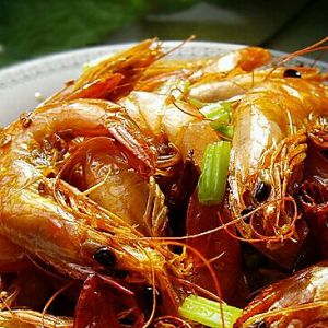 然后将虾倒进锅中,淋料酒,耗油,食盐适量,放入葱段,盖锅盖闷1—2分钟即可。