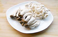 白玉菇、蟹味菇洗净,去根,掰成小朵。