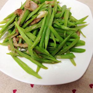 锅里水煮开,把四季豆倒入焯水,捞出备用