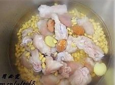 高压锅里添水,把猪蹄和黄豆倒进去,加姜片,盐,大火压20分钟。眼睛好使的网友还会发现我的锅里有几个大豆豆,那是菠萝蜜的里面的种子,也可以吃的,面面的。