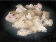 锅里烧开水,把猪蹄放进去焯去血沫和腥味。