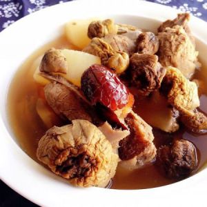 排骨焯水洗净后,放进炖盅,再放入姬松茸,然后放入切好的萝卜,最后撒几颗红枣进去!记得把泡姬松茸的水,倒进去,然后再放足水,炖2.5个小时。(上班族可以使用炖盅的预约功能,下班前自动炖煮)出锅前撒盐!