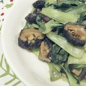 干香菇事先用开水泡发。蒜子炒香后加入香菇翻炒一会,出香味即可。