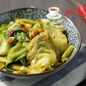 翻炒至圆白菜微微变色,最后加入少许盐调味盛入盘中。