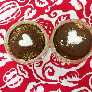 最后筛撒一层可可粉,用糖粉筛出喜欢的造型