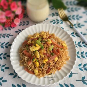 炒锅加入少许食用油,大火烧热,打入鸡蛋炒散,盛出备用。
