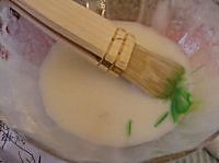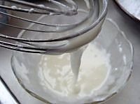 将蛋白和糖粉用手动打蛋器打匀后,就可以做为粘合剂盖房子了。(浓的部分做粘合,稀的部分可以装饰,稀稠可以用添加柠檬汁来控制)