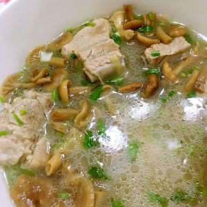 一碗鲜香的小黄蘑排骨汤就做好啦!