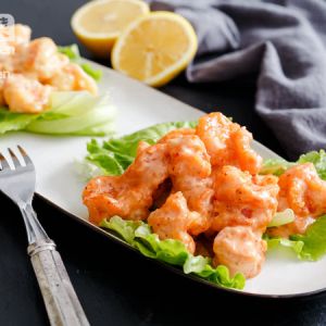 将炸好的虾仁一分为二,分别与甜酸酱和甜辣酱搅拌均匀。