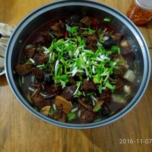 牛肉放入高压锅煮30分钟,熟透即可,完成后倒入火锅,加入适量原汤汁。美味的牛肉火锅就做好了。