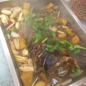 准备油锅,爆香葱姜蒜,豆瓣酱红辣椒放入其他材料,加入汤料,烧熟。