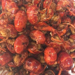 开小火到入油,蒜蓉生姜爆香,到入辣酱,再倒入虾球翻炒
