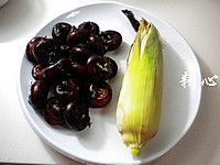 将马蹄去皮、粟米剥皮和切块,然后都洗净。