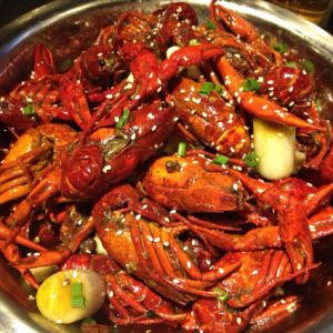 倒入750毫升油油温烧到锅边有青烟冒出即可下入小龙虾炸制两分钟,然后捞出来备用。